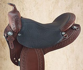 Classic reining design and light weight design to improve performance. Padded leather or suede seat. Smooth or rough out seat jockey. Round, square or butterfly skirt. 23 lbs.