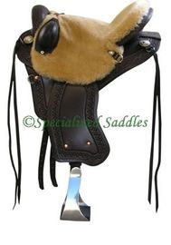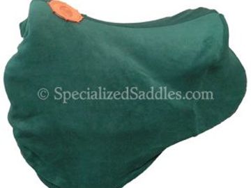 Interchangeable padded leather or suede seat. Narrow twist. Short pommel for sufficient wither clearance. Total saddle length 23" with a short round skirt. 20 lbs.